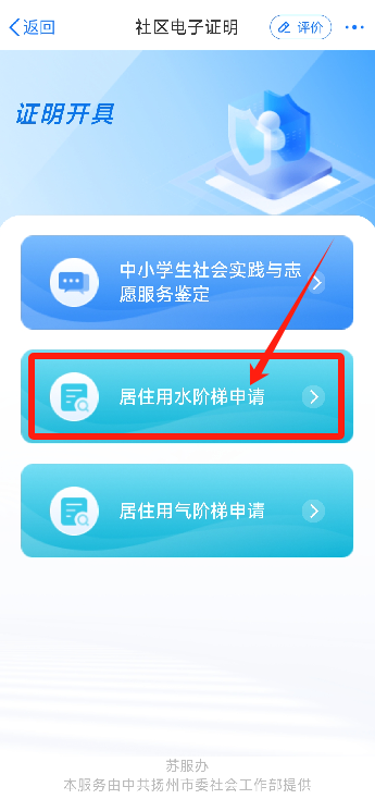 選擇“居住用水/氣階梯申請”模塊,點擊申請。(此處以居民用水為例)