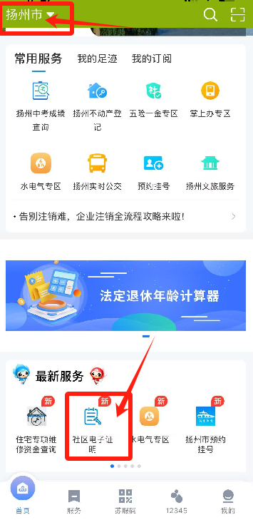 注冊登錄后,選擇揚州站點,在最新服務(wù)中,點擊“社區(qū)電子證明”。