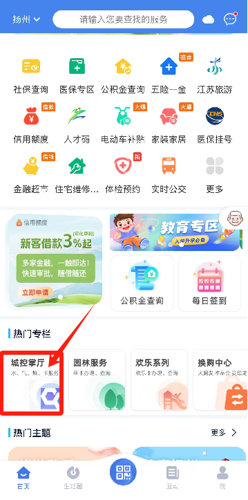 打開我的揚州APP,在熱門專欄的“城控掌廳”,選擇“水氣階梯申請”。