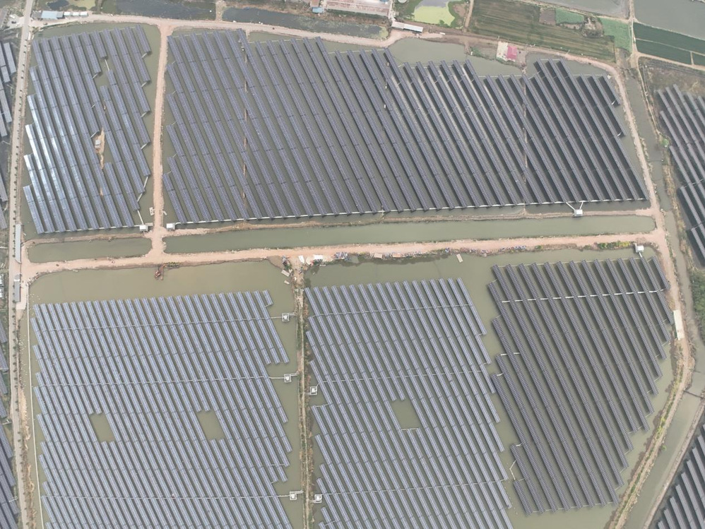 公道鎮(zhèn)9兆瓦漁光互補二期項目位于邗江區(qū)公道鎮(zhèn),交流側(cè)裝機容量9兆瓦、直流側(cè)裝機容量約10兆瓦,采用“漁光互補”模式進行綜合開發(fā),通過在魚塘水面上方架設(shè)光伏板陣列、光伏板下方水域進行漁業(yè)養(yǎng)殖,在提供清潔能源的同時,增加土地資源利用率,助力漁業(yè)發(fā)展,實現(xiàn)光伏發(fā)電和漁業(yè)養(yǎng)殖的有機融合,形成“水上發(fā)電、水下養(yǎng)殖、一地兩用、漁光互補”的復(fù)合產(chǎn)業(yè)模式。據(jù)測算,項目年均發(fā)電約1200萬度,同燃煤火電站相比,每年可節(jié)約標準煤約3600噸,相應(yīng)可減排二氧化碳約10000噸。