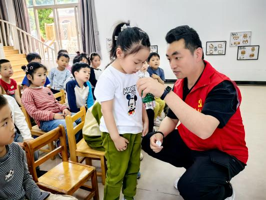 在互動環(huán)節(jié),“節(jié)水小老師”精心設(shè)計了“水滴大冒險”趣味問答游戲?!跋词謺r怎么用水最省?”“魚缸換出來的水還能做什么?”隨著一個個有趣的問題拋出,孩子們紛紛舉起小手,搶著回答。答對問題的小朋友則獲得印有節(jié)水卡通圖案的小貼紙,貼在“節(jié)水小達(dá)人” 榮譽(yù)墻上。