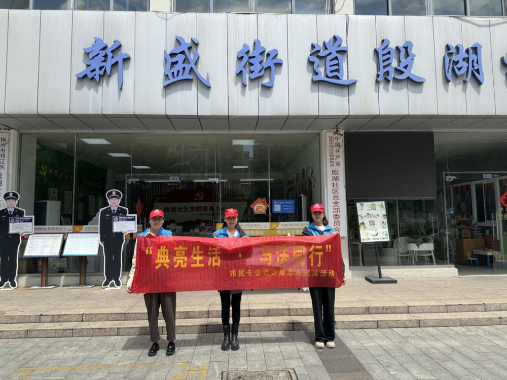 今年5月是第五個“民法典宣傳月”,為深入推動《民法典》宣傳教育工作走深走實,市民卡公司“e飛揚(yáng)”志愿服務(wù)隊走進(jìn)新盛街道殷湖社區(qū)為群眾開展與“法”同行、“典”亮生活主題宣傳活動,引導(dǎo)群眾辦事依法、遇事找法、解決問題用法、化解矛盾靠法,鼓勵群眾多運(yùn)用法律維護(hù)自身合法權(quán)益。