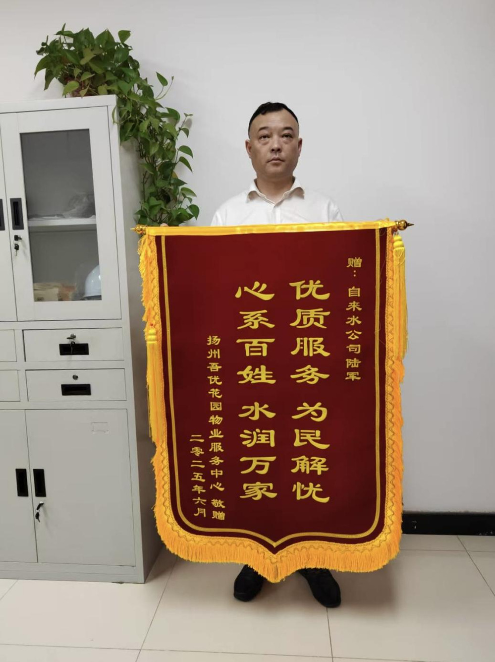 時(shí)隔兩年,物業(yè)公司代表小區(qū)業(yè)主委員會(huì)專程送來(lái)錦旗。錦旗致謝的背后,是對(duì)這位老黨員一直以來(lái)高效處置、貼心服務(wù)的肯定,更彰顯了長(zhǎng)江水務(wù)守護(hù)民生用水的使命擔(dān)當(dāng),為水務(wù)服務(wù)樹(shù)立起暖心標(biāo)桿。
