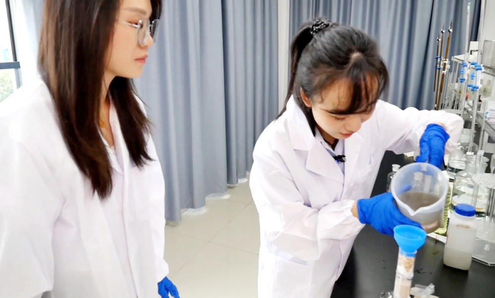 直播伊始,鏡頭聚焦實驗室,講解員手持燒杯、滴管等實驗器具,化身“水質(zhì)魔法師”,她將模擬污水緩緩倒入燒杯,模擬污水處理流程,邊講解邊依次加入絮凝劑、沉淀劑,輕輕攪拌間,使原本渾濁的污水凈化為清澈的水源,這場簡約小實驗瞬間點燃了觀眾的熱情。