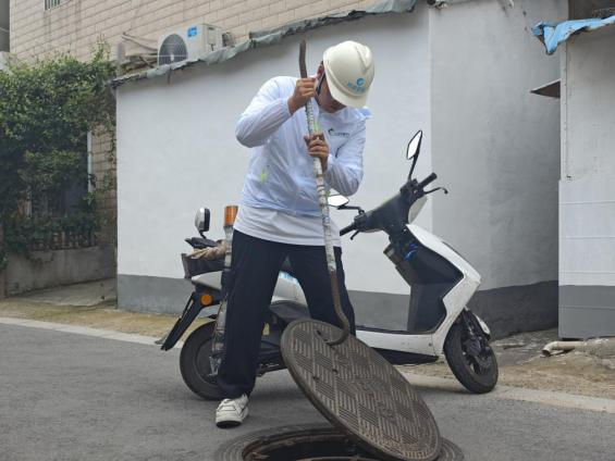 “夏季巡查必須趕早,避開中午最熱時段?!薄?0”后潘玥昕邊說邊麻利地打開第一個檢查井。井蓋掀開的瞬間,井蓋下的熱浪夾雜著刺鼻的氣味撲面而來,但他早已習以為常。上午10點,地表溫度已突破40℃。他們的工作服濕了又干、干了又濕,早已結(jié)出一層白色的鹽漬。