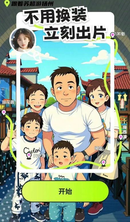 AI旅拍核心依托先進(jìn)的AIGC算法。其強(qiáng)大的面部識(shí)別與重建技術(shù),精準(zhǔn)捕捉游客五官特征;智能光影膚色匹配技術(shù)則實(shí)現(xiàn)影像與揚(yáng)州文化元素的無(wú)痕自然融合。支持單人和多人寫真、卡通濾鏡風(fēng)格,多人合拍時(shí)智能協(xié)調(diào)不同人物的風(fēng)格融合,確保群體照既風(fēng)格統(tǒng)一又個(gè)性鮮明。最終生成的每一張照片,都是藝術(shù)感與真實(shí)感兼具的“穿越”瞬間,成為游客獨(dú)一無(wú)二的揚(yáng)州珍藏記憶。