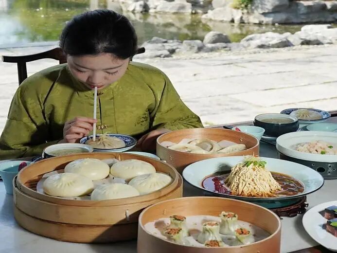 長樂客?!扒镯嵲绮柩偶敝噩F(xiàn)清代鹽商“早茶會(huì)客”的雅趣,蟹黃湯包、翡翠燒賣等淮揚(yáng)名點(diǎn)搭配古箏琵琶演奏,讓游客在舌尖與耳畔同步感受非遺魅力。隔壁的芍藥園子書場內(nèi),評(píng)彈藝人傾情演繹《珍珠塔》《雙金錠》等經(jīng)典曲目,場場爆滿的盛況印證著傳統(tǒng)曲藝的當(dāng)代生命力。長樂鹽商宴更是海納八方客,單日最高接待量突破200人次,沉浸式鹽商家宴成為美食愛好者的全新打卡地標(biāo)。