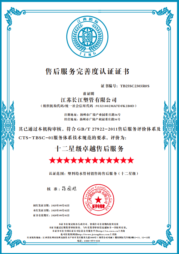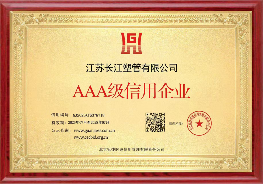 2025年,江蘇長(zhǎng)江塑管有限公司接連榮獲AAA級(jí)信用企業(yè)蟬聯(lián)認(rèn)證與十二星級(jí)卓越售后服務(wù)評(píng)價(jià)。這兩項(xiàng)沉甸甸的榮譽(yù),不僅是國(guó)家權(quán)威機(jī)構(gòu)的高度認(rèn)可,更是企業(yè)全體員工在生產(chǎn)一線以汗水與擔(dān)當(dāng)書寫的奮斗答卷。