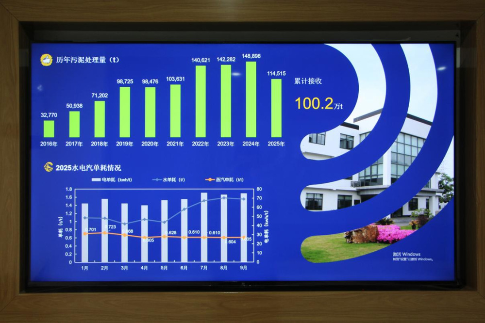 在工藝管控與環(huán)保達標層面,企業(yè)搭建全流程智能監(jiān)測體系:污泥進場時,通過自動采樣設(shè)備檢測金屬、有機物含量,杜絕不合格污泥入場;干化過程中,中控系統(tǒng)實時監(jiān)控溫度、濕度、蒸汽壓力等十余項關(guān)鍵參數(shù),偏差超限時自動報警調(diào)整,通過精細化管理,企業(yè)當前蒸汽單耗較設(shè)計值下降32%,用電單耗較設(shè)計值下降15%,均處于行業(yè)領(lǐng)先水平;尾水、廢氣排放均遠低于國家排放標準,十年來污染物排放合格率始終保持100%,真正實現(xiàn)“安全處置、環(huán)保達標、資源循環(huán)”的技術(shù)閉環(huán)。