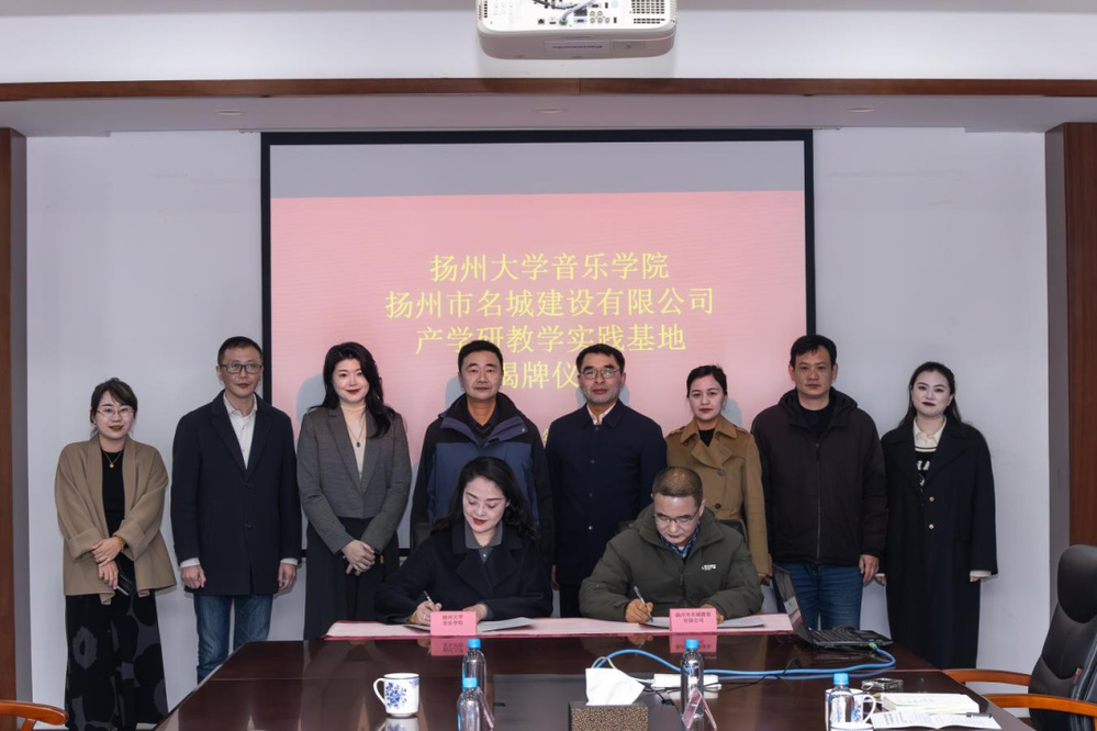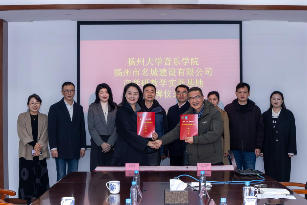 近日,揚(yáng)州市名城建設(shè)有限公司與揚(yáng)州大學(xué)音樂學(xué)院“產(chǎn)學(xué)研教學(xué)實(shí)踐基地” 簽約揭牌儀式在原古城保護(hù)展示館舉行。揚(yáng)州市名城建設(shè)有限公司黨總支書記、總經(jīng)理戴興春,揚(yáng)州大學(xué)音樂學(xué)院黨委書記陸濤、院長(zhǎng)邵萍及相關(guān)負(fù)責(zé)人出席儀式。