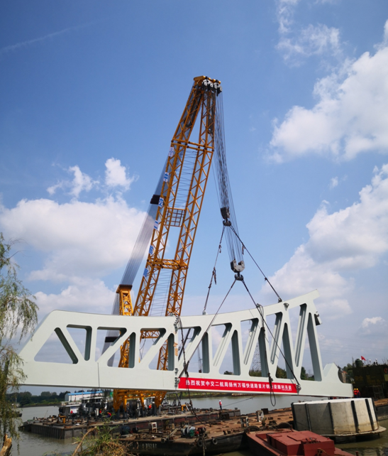 9月26日下午,萬福快速路跨京杭運(yùn)河大橋首片鋼桁架吊裝成功,打響了大橋上部結(jié)構(gòu)施工的第一槍。