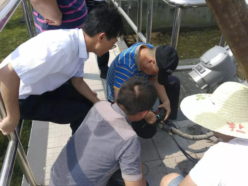 6月23日下午3時(shí)許,在湯汪污水廠生物池檢修平臺(tái)上,蔣宏根帶領(lǐng)著2名組員正緊張地工作著。高溫籠罩,熱浪滾滾。歷經(jīng)近1個(gè)小時(shí)的維修,撇水器的故障已基本排除。組員們都躲到陰涼處休息了,但是班長蔣宏根仍然頂著烈日,驗(yàn)收每道維修工序,復(fù)查每個(gè)測試節(jié)點(diǎn)。他隨身帶著一塊抹布,卻不是為了擦拭臉上的汗珠,等到設(shè)備完全恢復(fù)工作,他習(xí)慣性地把維修設(shè)備上的灰塵和油垢擦干凈,從口袋里掏出礦泉水一飲而盡,“終于解決問題,該去下一個(gè)報(bào)修點(diǎn)了”。