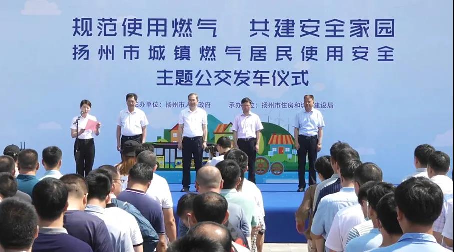 為貫徹落實(shí)習(xí)近平總書記關(guān)于安全生產(chǎn)的重要論述和在黨史學(xué)習(xí)教育動員大會上的重要講話精神,深入推進(jìn)全市城鎮(zhèn)燃?xì)饩用袷褂冒踩捌邆€一”專項(xiàng)行動,6月24日上午,揚(yáng)州市政府在明月湖廣場舉辦“城鎮(zhèn)燃?xì)饩用袷褂冒踩黝}公交車發(fā)車儀式”。城控集團(tuán)副董事長戚磊、揚(yáng)州中燃分管負(fù)責(zé)人、“藍(lán)焰衛(wèi)士”參加活動。
