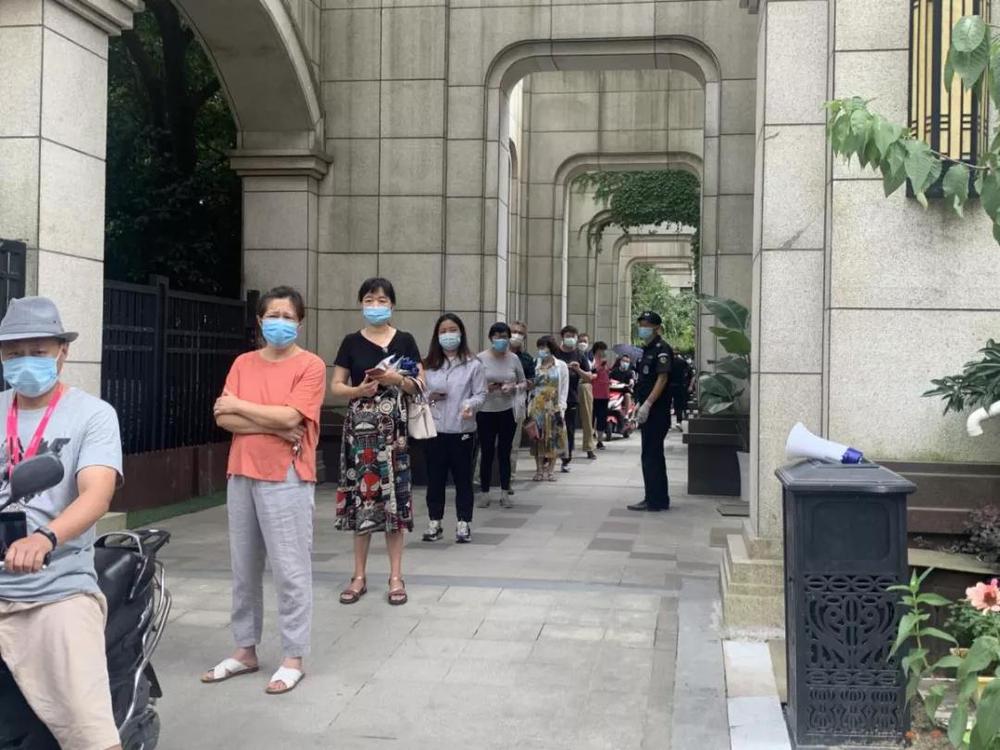 有了前三次的經(jīng)驗,本次京杭融園物業(yè)項目部采用逐棟通知的方法,配合防疫指揮部的安排,并結(jié)合檢測現(xiàn)場人員排隊的實時情況反饋,有序的批量組織業(yè)主前往核酸檢測現(xiàn)場,以減少業(yè)主頂著太陽排隊的時間。