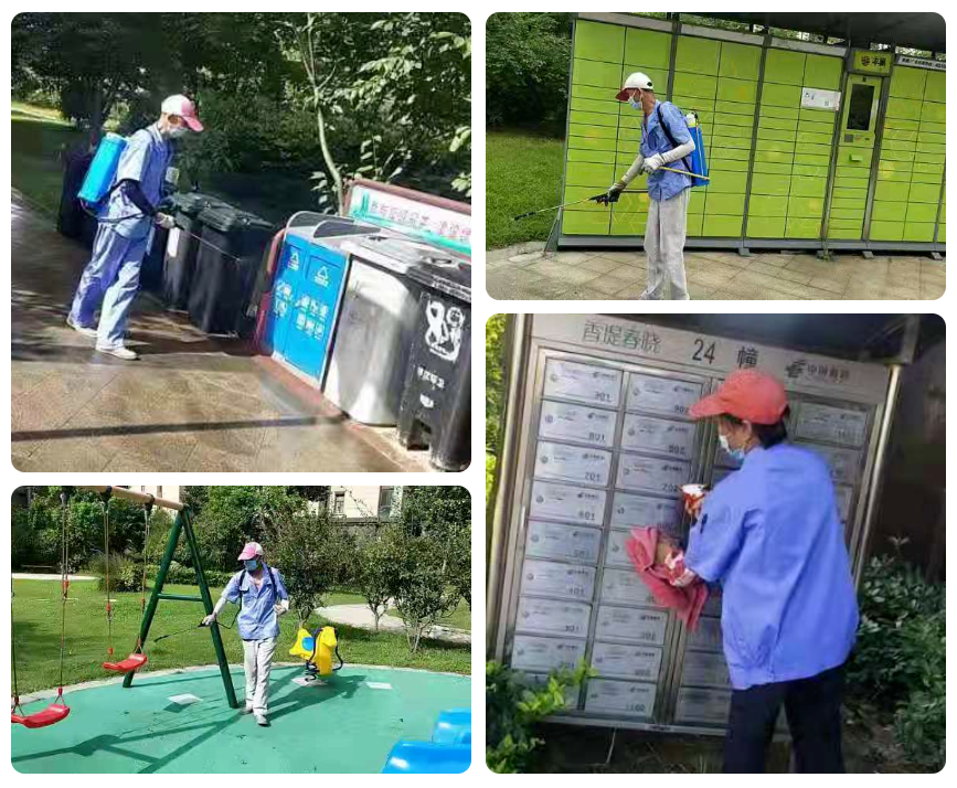 從接到屬地政府關(guān)于落實(shí)疫情防控措施,加強(qiáng)小區(qū)管控的要求起,香堤春曉保潔隊(duì)伍就每天上午、下午分別對(duì)小區(qū)進(jìn)行2次全面消殺,電梯轎廂、電梯廳、門廳、把手,公共休閑區(qū)、兒童游樂區(qū),垃圾桶垃圾池及周邊……堅(jiān)決做到不留死角,全方位消毒。