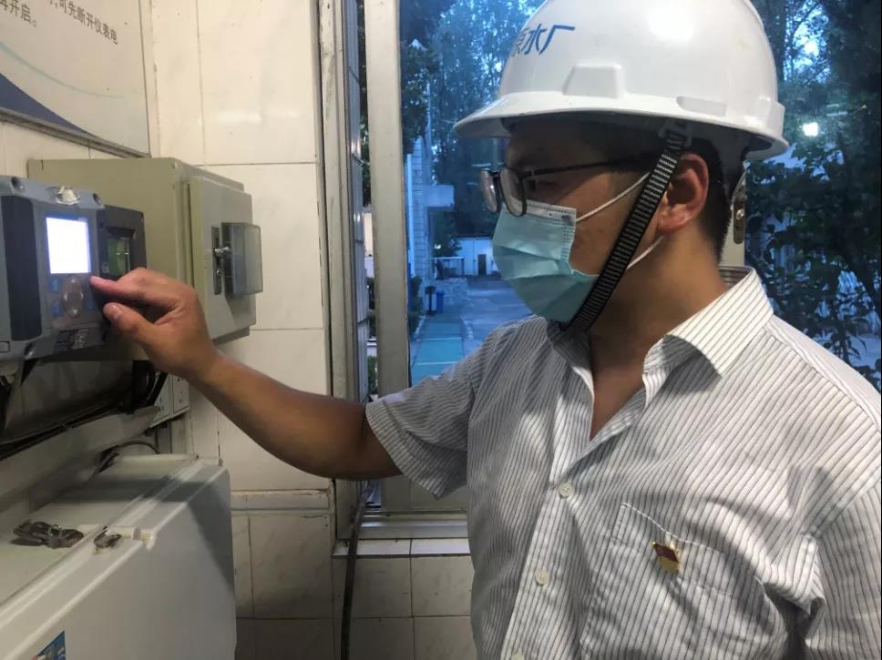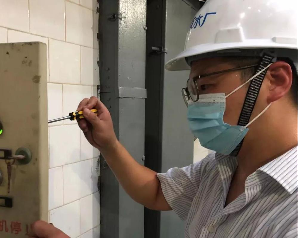 吳俊趕到泵房,經(jīng)過仔細(xì)查找,發(fā)現(xiàn)由于啟動按鈕老化,按鈕接線端子因老化松動,組員提出可以用絕緣膠帶包裹修復(fù)的方案。“不行!這個可容不得一絲馬虎,既已老化就要換新的!”他當(dāng)機立斷,一路小跑從倉庫拿出新按鈕趕緊更換,在悶熱的泵房內(nèi)他的額頭上布滿了汗水不停地滴落。“終于換好了!” 當(dāng)聽到電機啟動一聲長鳴,水泵轟隆隆運轉(zhuǎn)了起來,機組終于恢復(fù)了正常,他高興地?fù)]了揮手,組員們看見他們的班長像剛從水里撈出來一樣,大家也紛紛笑了起來。在戰(zhàn)疫情、保生產(chǎn)的形勢下,吳俊一直保持著高度警惕,一邊做廠區(qū)疫情防控工作,一邊時刻留心設(shè)備運行狀況,做好供水的“源頭哨兵”。