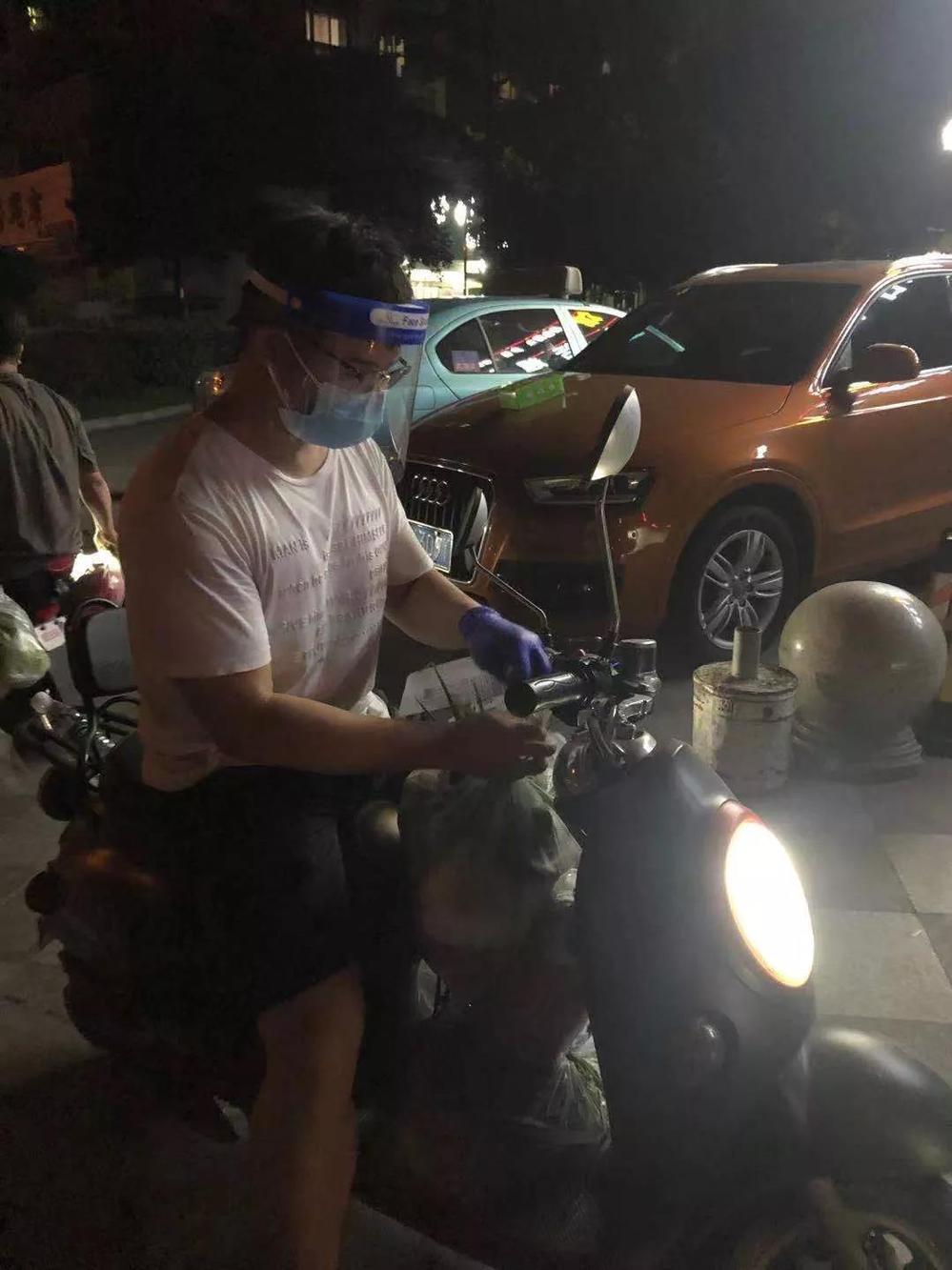 (計(jì)劃財(cái)務(wù)處吳亞洲,在璽園社區(qū)進(jìn)行蔬菜、肉品生活物資配送,每日往返100余次)