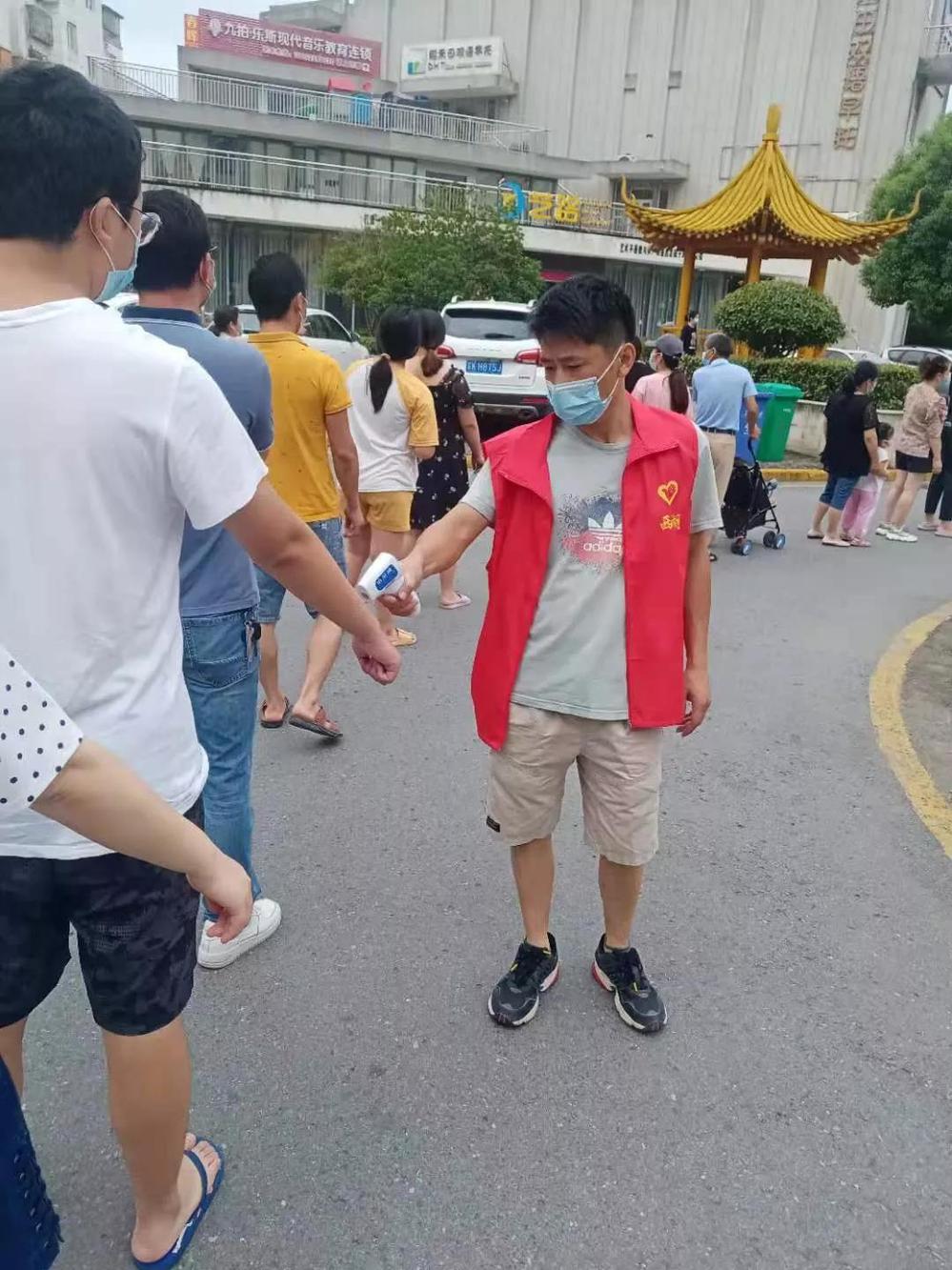 (總工程師辦公室李康文,在司徒村社區(qū)為核酸檢測人員進(jìn)行體溫測量,同時(shí)開展1米安全距離勸導(dǎo))