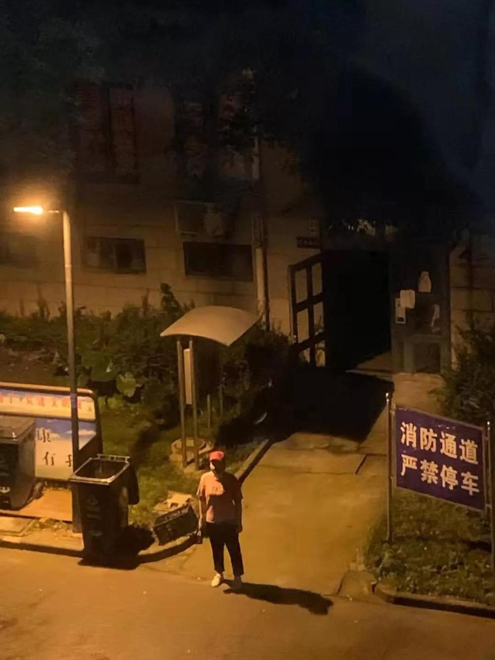 (夜深人靜時(shí)刻,生產(chǎn)運(yùn)行處許佳仍在五里社區(qū)萬鴻城市花園小區(qū)內(nèi)路口進(jìn)行單元樓管控,勸返出樓棟人員進(jìn)行居家隔離)