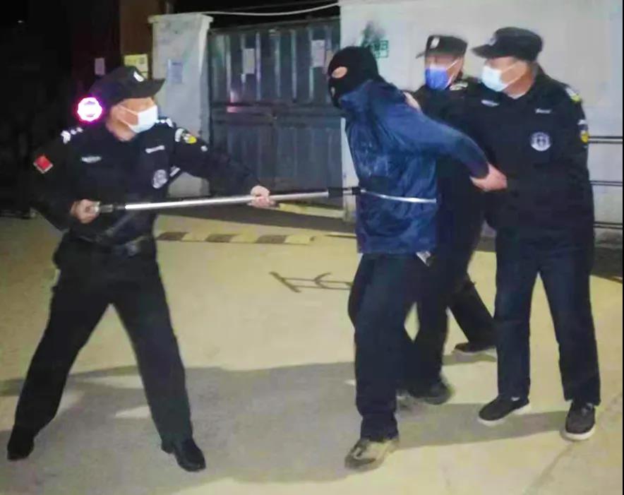 防恐演練中,一名“可疑人員”利用夜色,悄然來到場站門口,被當班保安發(fā)現(xiàn),在厲聲詢問來站目的無果后,該人員竟翻越電動門進入場站內,被訓練有素的保安用防恐器具制服。