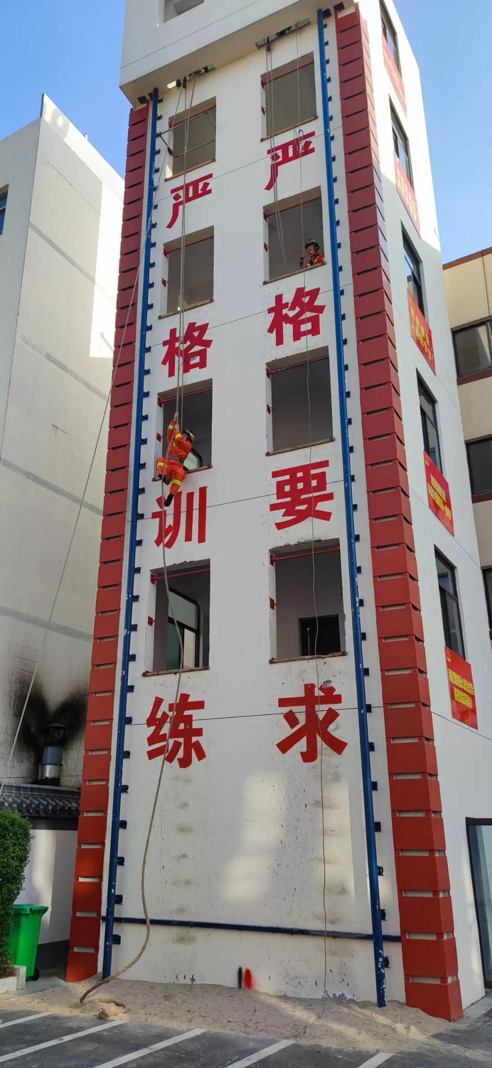 消防員展示平時的訓(xùn)練
