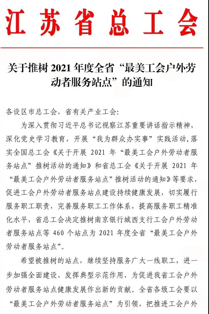 近日,江蘇省總工會下發(fā)《通知》,推樹2021年度全省“最美工會戶外勞動者服務(wù)站點”,長江水務(wù)公司寶帶營業(yè)廳工會戶外勞動者服務(wù)站點榮登榜單。