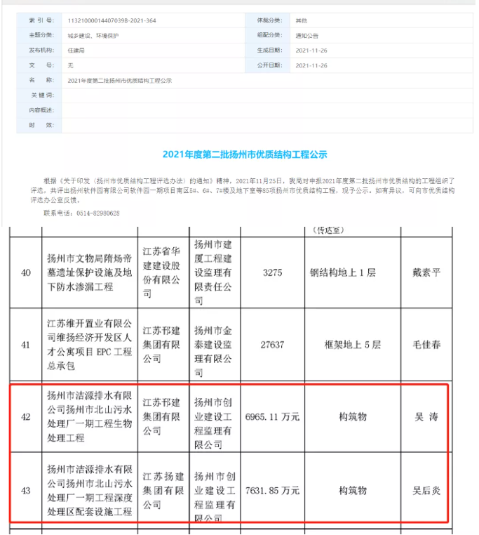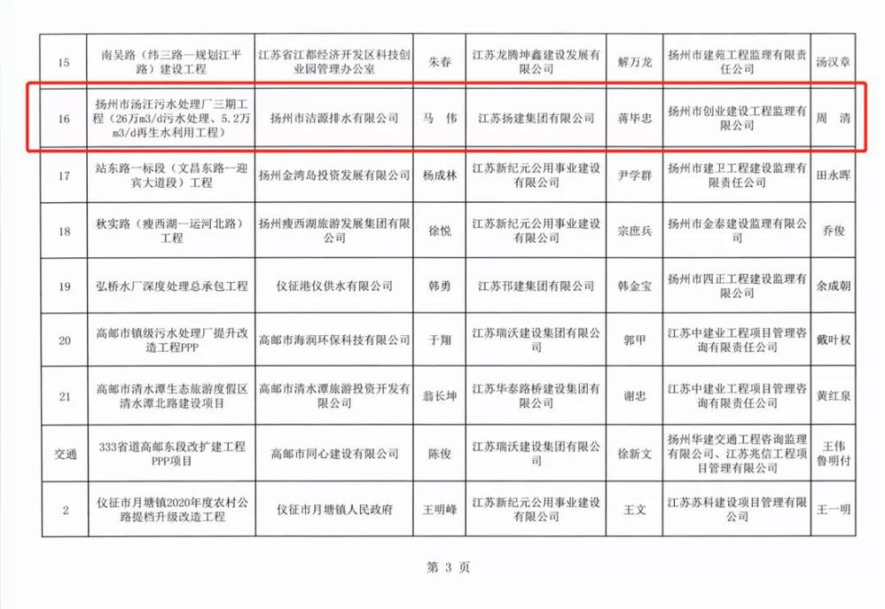 2021年底,揚州市優(yōu)質工程獎“瓊花杯”獲獎工程名單揭曉,揚州市湯汪污水處理廠三期工程(26萬噸/日污水處理、5.2萬噸/日再生水利用工程)榮獲2021年度“瓊花杯”市政類優(yōu)質工程獎。同時,湯汪三期尾水管線工程、北山一期工程生物處理區(qū)工程、北山一期深度處理區(qū)及配套設施工程、北山一期尾水管線工程,4個項目均獲市文明工地稱號;北山一期工程生物處理區(qū)工程、北山一期深度處理區(qū)及配套設施工程,2個項目榮獲市優(yōu)質結構。