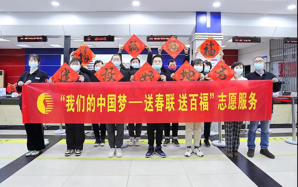 春節(jié)將近,年味漸濃。1月27日,揚州中燃黨委組織藍焰文化志愿者在城控集團公用服務(wù)大廳開展“我們的中國夢——送春聯(lián) 送百?!敝黝}活動,用筆墨傳遞歡樂祥和,用真情送上誠摯祝福,營造濃郁的節(jié)日喜慶氛圍。