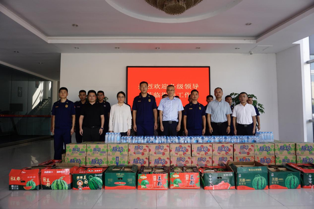 8月1日下午,揚(yáng)州公用控股集團(tuán)有限公司領(lǐng)導(dǎo)班子一行,前往邗江區(qū)新盛消防中隊(duì),慰問高溫奮斗在應(yīng)急搶險救援一線的消防隊(duì)員們,為他們送去消暑用品。