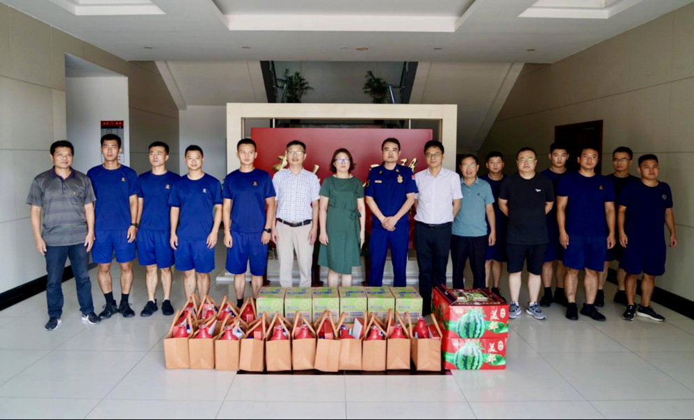 公司一行親切地慰問了消防隊(duì)員,參觀了消防隊(duì)員的訓(xùn)練場地,了解隊(duì)員們的日常訓(xùn)練及消防設(shè)施設(shè)備等運(yùn)行情況,認(rèn)真學(xué)習(xí)了在事故預(yù)防、隱患排查、搶險救援等方面的優(yōu)良經(jīng)驗(yàn)。消防隊(duì)員感謝大家對消防救援工作的關(guān)心和支持。保護(hù)人民群眾生命財產(chǎn)安全是消防救援隊(duì)伍的神圣職責(zé),他們一定不負(fù)人民重托,戰(zhàn)高溫、斗酷暑,始終奮戰(zhàn)在搶險救援第一線,為群眾安居樂業(yè)保駕護(hù)航。