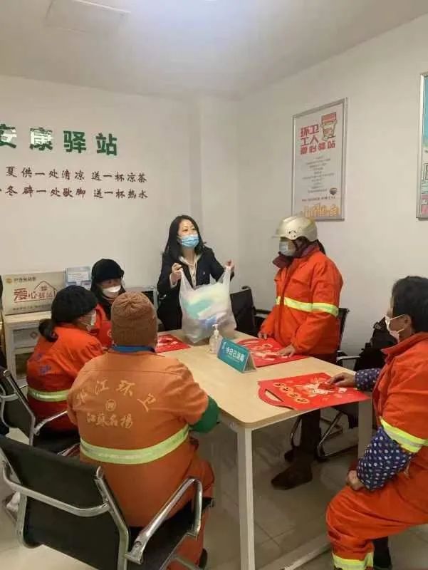 該站點嚴格按照“愛心驛站(點)”標準要求的設施進行建設,長江水務為站點配備座椅、電水壺、微波爐、電風扇、雨傘、空調、書籍、報刊、應急藥箱等,為戶外工作者提供遮風擋雨、燒水熱飯、換衣如廁、應急救助等便利條件。2018年,站點內又增設了“愛心母嬰室”,為廣大女性安然度過特殊生理階段提供更加人性化的溫馨服務。站點每年定期開展夏季送清涼、冬季送溫暖活動。炎炎夏日,為奮戰(zhàn)在烈日下的戶外勞動者提供藿香正氣口服液、風油精、清涼油、人丹、花露水、蚊不叮、礦泉水等防暑降溫物品,數九寒冬,為寒風中堅守崗位的戶外勞動者送上手套、帽子、圍巾和暖寶寶等御寒物品。