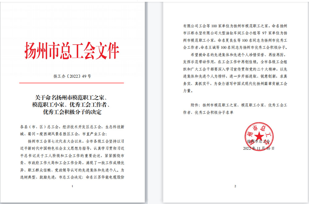2022年,城建資產(chǎn)聯(lián)合基層工會緊緊圍繞公司年度中心任務(wù),團(tuán)結(jié)帶領(lǐng)廣大干部職工,積極致力于企業(yè)文化建設(shè)發(fā)展,以為職工謀福利為己任,扎實(shí)履行工會職能,關(guān)心關(guān)愛職工身心健康,秉承“干實(shí)事、辦好事、解難事”的宗旨,從“心”出發(fā),真正做職工貼心的“娘家人”。一份耕耘一份收獲,在全體職工齊心協(xié)力的努力下,城建資產(chǎn)聯(lián)合基層工會被揚(yáng)州市總工會授予“揚(yáng)州市模范職工之家”榮譽(yù)稱號。
