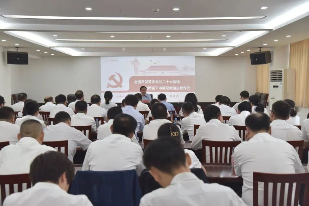 張思忠以《全面貫徹黨的二十大精神 在創(chuàng)新實干中展現(xiàn)新?lián)斝伦鳛椤窞轭},從“為何黨員干部必須要有擔當、衡量黨員干部敢于擔當?shù)臉藴?、用實際行動詮釋‘擔當’”三個方面進行了闡述,他結合長江水務實際,既分析了問題,又提出了要求,為長江水務下一步發(fā)展指明了方向。