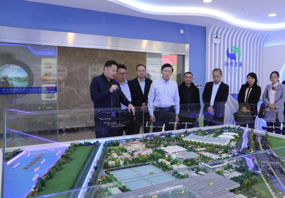 沈家寬一行首先參觀了潔源環(huán)境公司綜合環(huán)保展廳,聽取了市區(qū)污水處理廠建設(shè)和運(yùn)行情況的匯報(bào),并現(xiàn)場參觀了湯汪污水處理廠中央控制室,調(diào)研組一行對(duì)湯汪污水處理廠的穩(wěn)定優(yōu)質(zhì)運(yùn)行表示了肯定。