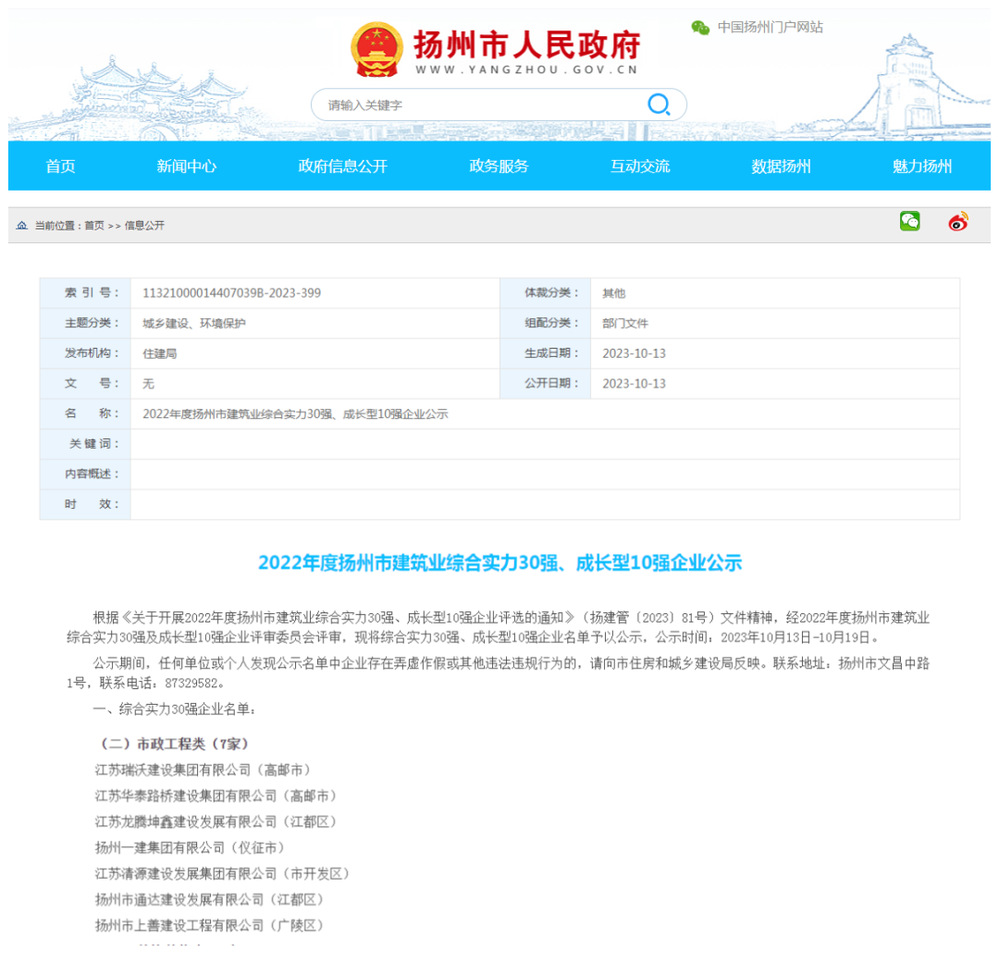揚州市建筑業(yè)綜合實力30強是根據(jù)揚建管〔2023〕81號文件精神,由市住建局和市統(tǒng)計局聯(lián)合舉辦,對揚州市建筑業(yè)企業(yè)的工程產(chǎn)值、省外業(yè)務(wù)、稅收、技術(shù)型人才、獲獎情況,經(jīng)評審委員會進行綜合評審的結(jié)果,是企業(yè)綜合實力的體現(xiàn)。這次建筑業(yè)綜合實力30強企業(yè),包括13家建筑工程類企業(yè)、7家市政工程類企業(yè)、3家機電安裝類企業(yè)、5家裝飾裝修類企業(yè)、2家水利水電工程類企業(yè)。