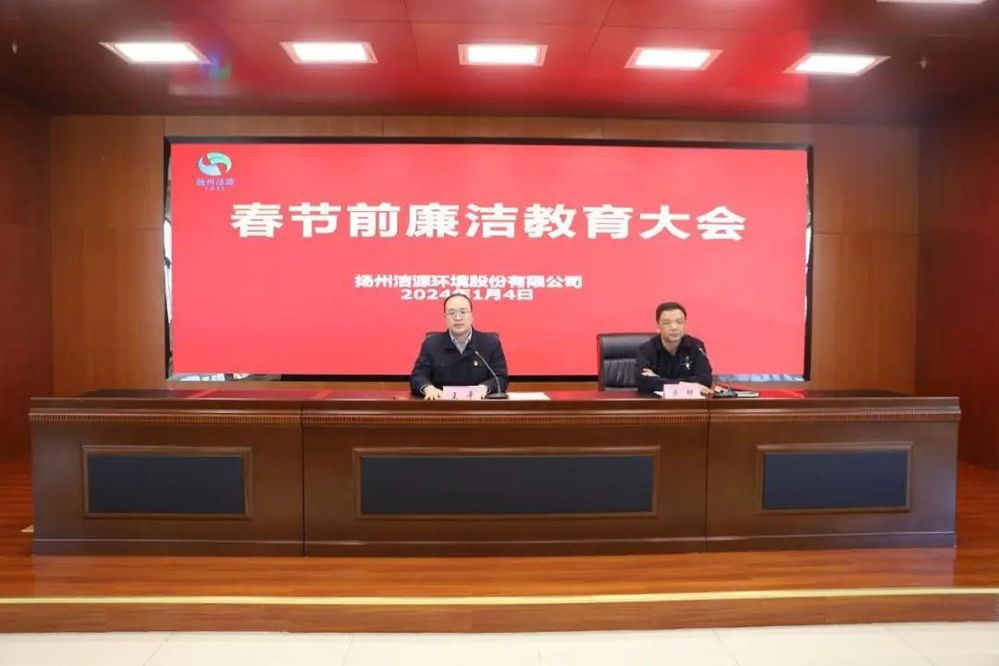 1月4日下午,潔源環(huán)境公司召開春節(jié)前廉潔教育大會,公司領(lǐng)導(dǎo)班子全體成員、全體中層干部及助理、重點(diǎn)崗位人員和供應(yīng)商代表參加會議。