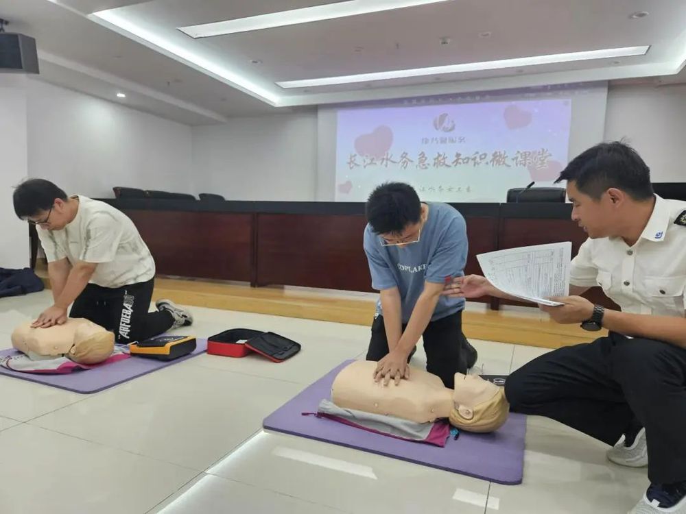 此次急救知識(shí)培訓(xùn)包括理論講解、現(xiàn)場(chǎng)演示、實(shí)踐操作三個(gè)環(huán)節(jié),揚(yáng)州市急救中心汪茂勝、吳枝兩位老師結(jié)合多年的工作實(shí)踐,通過(guò)真實(shí)的案例為公司職工普及急救黃金時(shí)間,重點(diǎn)講述了心肺復(fù)蘇、AED除顫儀、常見意外和疾病(溺水、中暑、癲癇、心梗、中風(fēng))等相關(guān)急救知識(shí)的處置方式、正確步驟和注意事項(xiàng)。參與培訓(xùn)的職工們現(xiàn)場(chǎng)分組參與演練,按照兩位老師的指導(dǎo),親身實(shí)踐操作了心肺復(fù)蘇、海姆立克急救法和意外傷害應(yīng)急處置等急救措施。長(zhǎng)江水務(wù)黨委委員、紀(jì)委書記、工會(huì)主席陳駿為獲得揚(yáng)州市社會(huì)急救員培訓(xùn)證的職工代表頒發(fā)了證書。