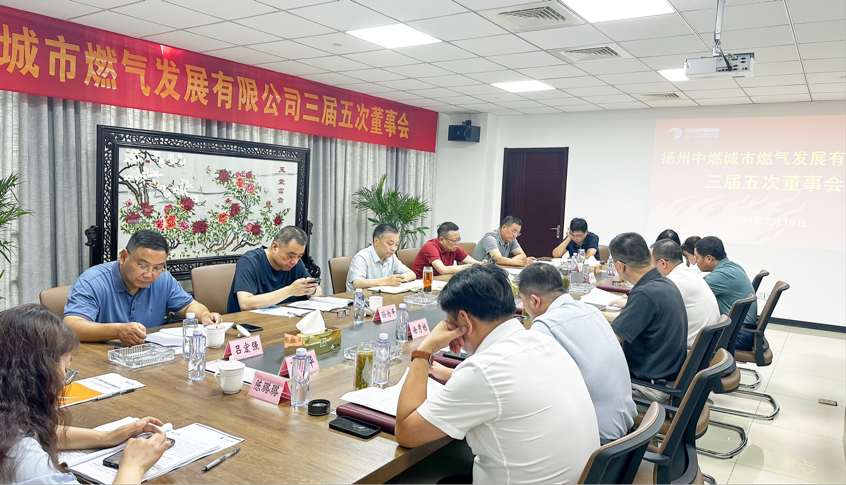 7月19日上午,揚州中燃公司召開三屆五次董事會。城控集團副總經(jīng)理、揚州中燃公司董事長孔德存主持會議。公司董事會成員出席會議,公司監(jiān)事、股東雙方相關(guān)職能部室負責人、揚州中燃公司經(jīng)營層列席了會議。