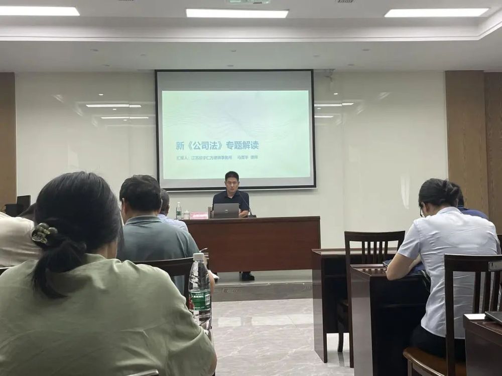 2024年7月1日起新修訂的《中華人民共和國公司法》(以下簡稱新《公司法》)正式施行。為了系統(tǒng)學(xué)習(xí)、理解新《公司法》的核心內(nèi)容,加強(qiáng)企業(yè)的合規(guī)管理,做好法律風(fēng)險(xiǎn)防控,助力企業(yè)健康平穩(wěn)發(fā)展,7月19日下午,資產(chǎn)公司邀請來自江蘇瓊宇仁方律師事務(wù)所馬震宇律師開展了新《公司法》專題解讀培訓(xùn)。資產(chǎn)公司領(lǐng)導(dǎo)班子成員、中層干部和相關(guān)工作人員參加培訓(xùn)。