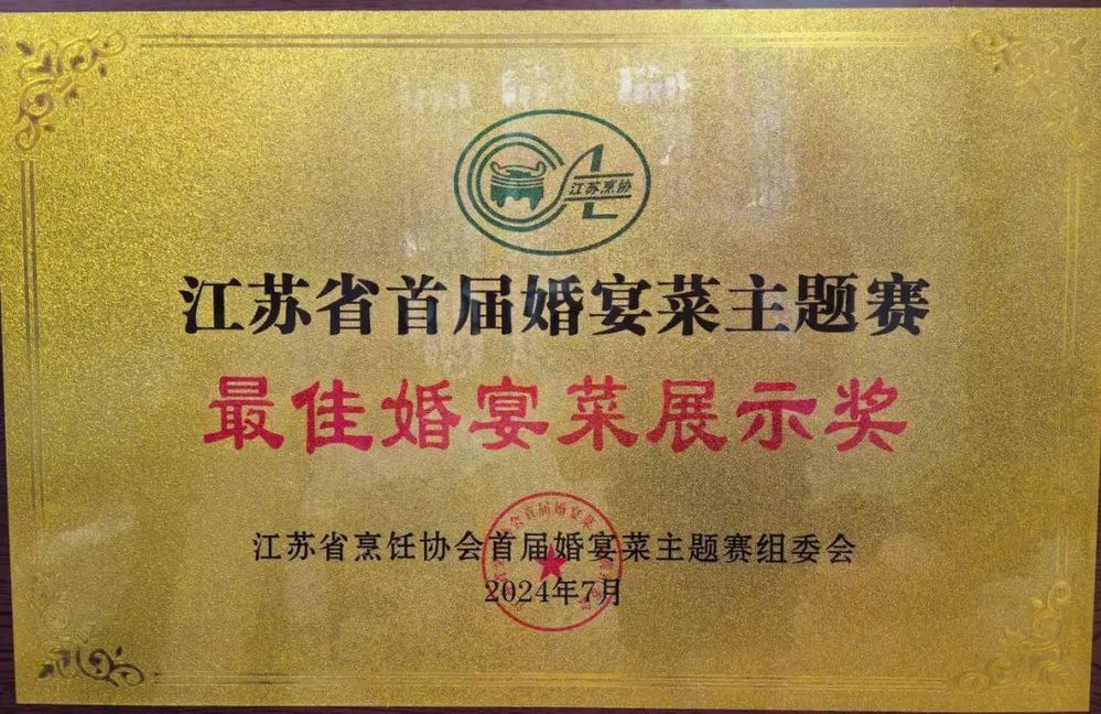 本次比賽邀請(qǐng)了來(lái)自江蘇省的餐飲企業(yè)廚師長(zhǎng)、注冊(cè)中國(guó)烹飪大師、中國(guó)烹飪協(xié)會(huì)會(huì)員等名廚參加。長(zhǎng)樂(lè)客棧酒店受邀參加。在高手如林的現(xiàn)場(chǎng),長(zhǎng)樂(lè)客棧酒店名廚夏偉帶著四名優(yōu)秀的廚師制作了一桌精致的婚宴菜肴并最終脫穎而出,榮獲集體金獎(jiǎng)。同時(shí),長(zhǎng)樂(lè)客棧酒店也榮獲“江蘇省首屆婚宴菜主題賽最佳婚宴菜展示獎(jiǎng)”。