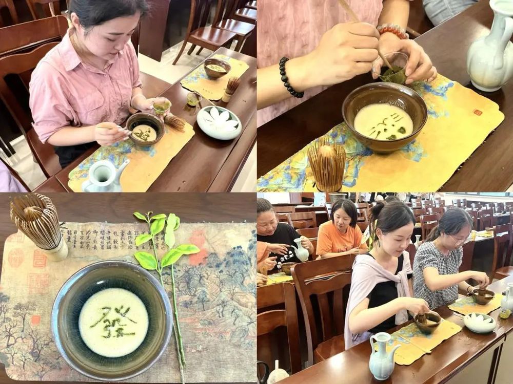 活動(dòng)開(kāi)始后,老師向大家介紹了宋代點(diǎn)茶的歷史背景,帶領(lǐng)大家了解宋人的點(diǎn)茶文化,接著邊講解邊示范了備水、碾茶、點(diǎn)茶、分茶的過(guò)程。職工們被點(diǎn)茶的獨(dú)特過(guò)程深深吸引,在老師的引導(dǎo)下,全身心投入到制作過(guò)程,大家平心靜氣,緩緩持起文雅的茶器,開(kāi)始用心點(diǎn)茶,全神貫注感受宋韻文化的意境,看著沉浮云沫,聞著四溢茶香,須臾之間,仿佛重沐了宋代的清風(fēng)朗月,沉浸其中,盡享歡愉。