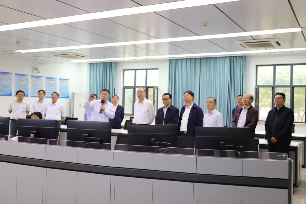 在一樓綜合環(huán)保展廳,公司講解員借助沙盤模型向檢查組一行詳細(xì)介紹了湯汪污水處理廠目前的運行規(guī)模、工藝處理流程、水質(zhì)排放標(biāo)準(zhǔn)及社會經(jīng)濟(jì)效益現(xiàn)狀。隨后,檢查組一行來到廠區(qū)中心控制室,更加直觀的了解了廠區(qū)運行控制情況。