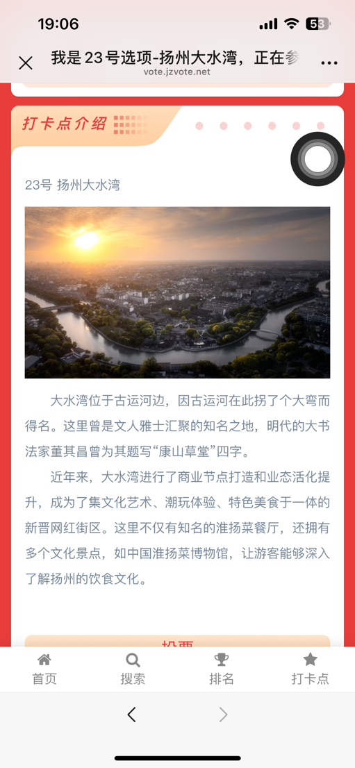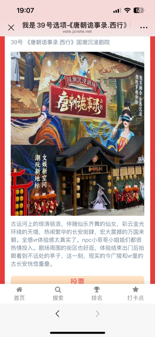 此次網(wǎng)選分為“美景、美宿、美味、美地、美物、美韻”6大板塊,經(jīng)過五天的網(wǎng)絡(luò)投票環(huán)節(jié),揚(yáng)州大水灣獲得了“美地”板塊第一名、唐朝詭事錄VR劇場獲得了“美韻”板塊第一名、南河樂宴在“美味”板塊也獲得靠前名次。