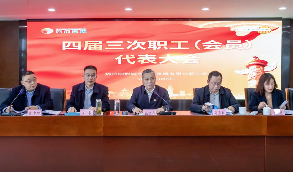 2025年3月6日下午,揚州中燃公司召開第四屆第三次職工、工會會員代表大會。揚州城控集團黨委委員、副總經(jīng)理、揚州中燃公司黨委書記、董事長孔德存出席會議并作了《穩(wěn)中快進擔使命 凝心聚力譜新篇》講話。本次會議應(yīng)到正式代表90人,實到正式代表79人。