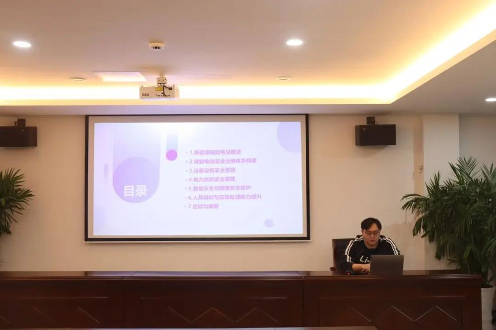 公司員工圍繞“新能源儲能電站運維管理”主題,結合新能源儲能電站發(fā)展現狀及趨勢,從設備設施安全管理、電力系統(tǒng)安全管理等方面,講解了新能源儲能電站安全運維要點、電網接入及并網調度規(guī)范、遠程監(jiān)控平臺安全防護等安全運維知識,為大家展現了一堂生動有趣、內容豐富的安全教育課。