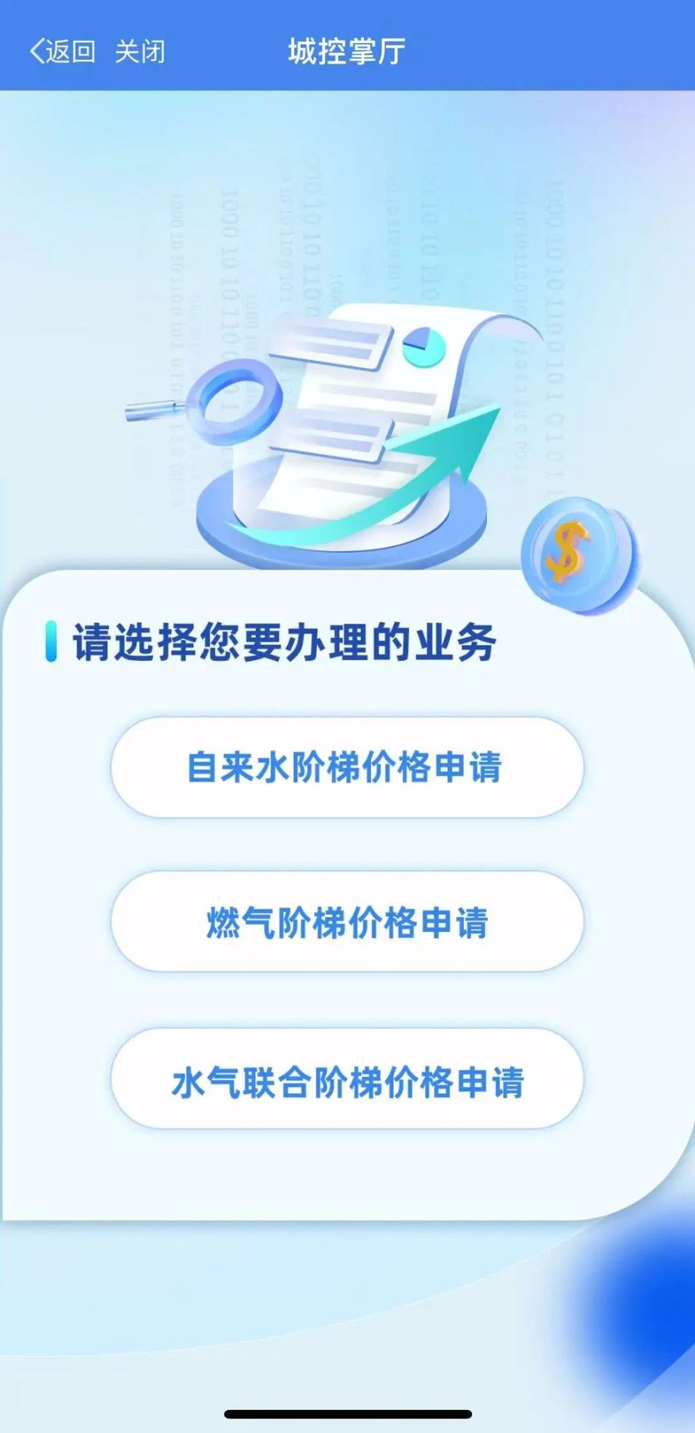 打開我的揚州APP,在熱門專欄的“城控掌廳”,選擇“水氣階梯申請”。