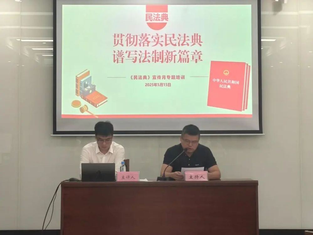 為全面提升員工法治素養(yǎng),強化依法履職能力,5月15日上午,資產(chǎn)公司舉辦了《民法典》宣傳月專題培訓(xùn)活動。公司領(lǐng)導(dǎo)班子成員、各處室及子公司負(fù)責(zé)人、員工代表共同參加。