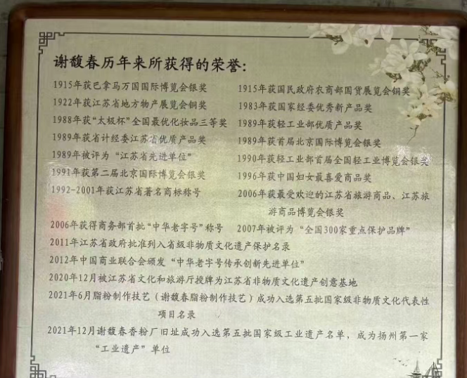 馥園深處,謝箴齋先生的書房猶存墨香。案頭那本泛黃的賬冊,記載著民國初年的黃金歲月:梳頭油日銷百瓶,鵝蛋粉供不應(yīng)求,連上海灘的名媛都托人捎帶??少~冊里也藏著戰(zhàn)火的灰燼,抗戰(zhàn)時期的某頁,墨跡忽然洇開,像是淚水浸透了紙背——那是謝家人守著作坊,在敵機(jī)轟鳴中堅(jiān)持手作的印記。記得1915年巴拿馬萬國博覽會上,當(dāng)謝馥春的香粉盒被輕輕揭開,銀質(zhì)的獎?wù)略诋悋l(xiāng)的燈光下閃爍,那是中國美妝第一次以東方神韻征服世界的時刻。這一榮譽(yù)不僅奠定了謝馥春的國際品牌地位,也為中國化妝品行業(yè)爭得了榮譽(yù)。