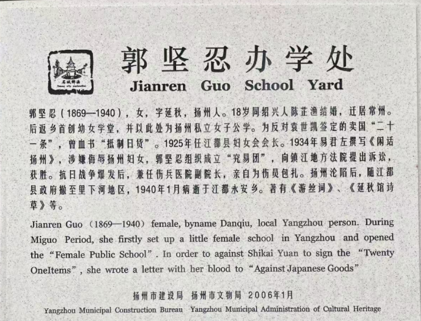 郭堅(jiān)忍的一生,恰似晚清至民國社會裂變的微觀縮影。當(dāng)揚(yáng)州城仍困于“三寸金蓮”的舊俗枷鎖時(shí),她已以不纏足會為刃,悄然剖開封建禮教的肌理;當(dāng)廣儲門故居的青磚灰瓦默立如常,其內(nèi)里早已成為女性掙脫閨閣的革命道場。這座看似尋常的民國建筑,實(shí)則是中國女性破繭成蝶的精神地標(biāo)——女學(xué)課堂的瑯瑯書聲與時(shí)代電波的滴答密語在此共振,將封建末世的挽歌,譜寫成一曲近代婦女解放的覺醒先聲。