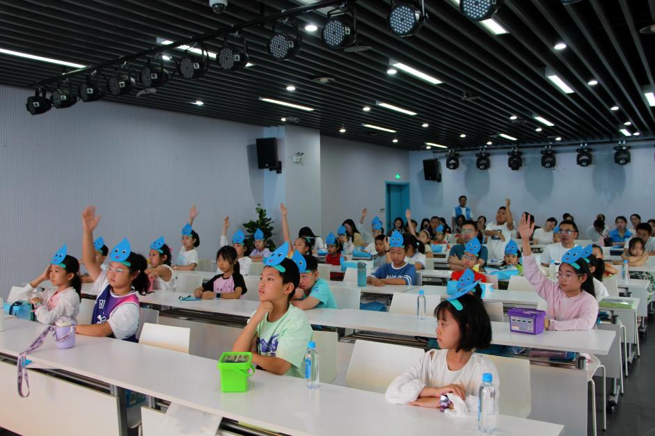 活動(dòng)現(xiàn)場(chǎng),志愿者們以動(dòng)畫視頻和PPT演示為載體,用通俗易懂的語(yǔ)言為孩子們講解了水循環(huán)的原理與過(guò)程。從水的源頭到最終歸宿,小朋友們跟隨著講解,清晰了解了水在城市中的流轉(zhuǎn)軌跡。